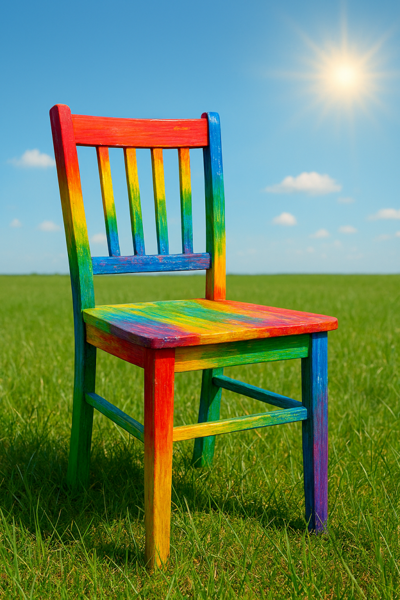 Das Symbol des Preises ist ein bemalter Holzstuhl, gestaltet von Menschen mit Behinderung und ihren Angehörigen. Jeder Stuhl ist ein Unikat und trägt die Handschrift derjenigen, die ihn geschaffen haben. Er steht für Teilhabe, Gemeinschaft und die Kraft, gemeinsam sichtbar und wertvoll zu sein.